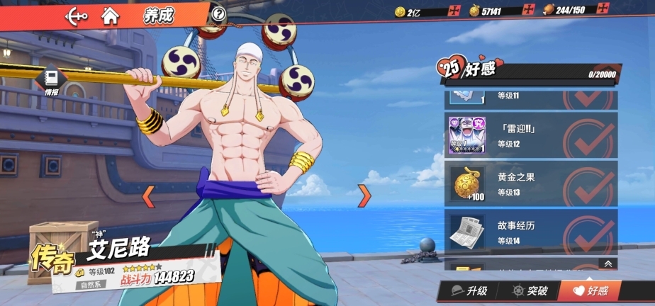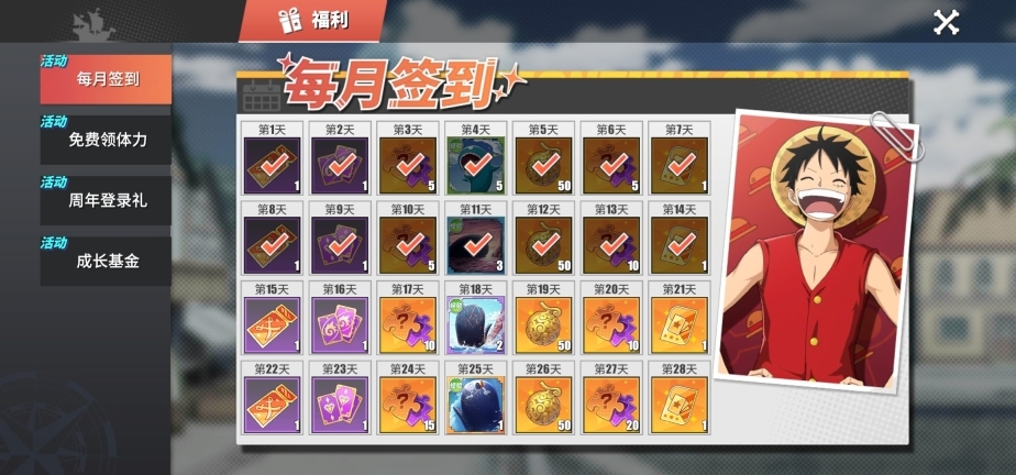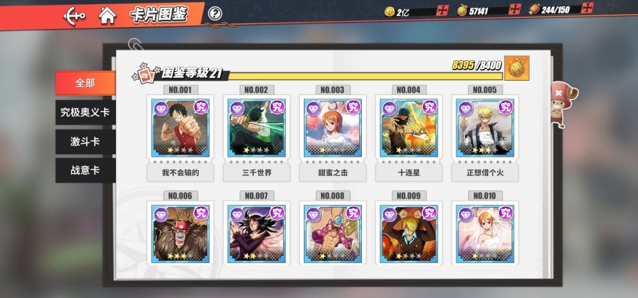 3、要是各位计划零氪或者微氪,那么在开局伙伴培养方面,主要培养路飞、索隆、奈美作为主力伙伴即可。即便零氪,大概一个月左右也能把A卡路飞提升到六星全金,要知道六星的A卡在实用性上比五星的SS卡更高。当然,大家也能挑选自己钟爱的伙伴来培养。
