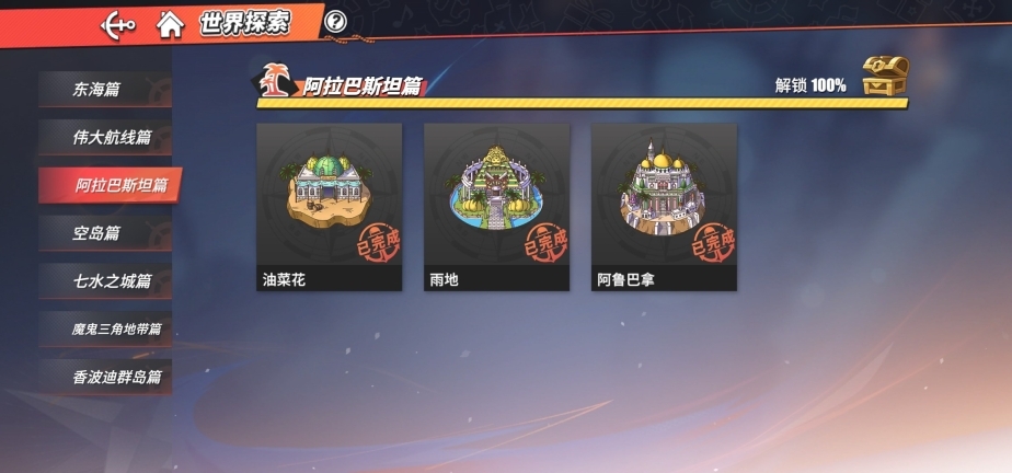 还原度max,精细到每栋房屋,让玩家体验一个真实立体的航海王世界!完整海域地图、原版声优配音,仿佛裸眼穿越航海王世界,无论是阿拉巴斯坦的漫天黄沙,还是七水之城的粼粼波涛,尽在热血航线!