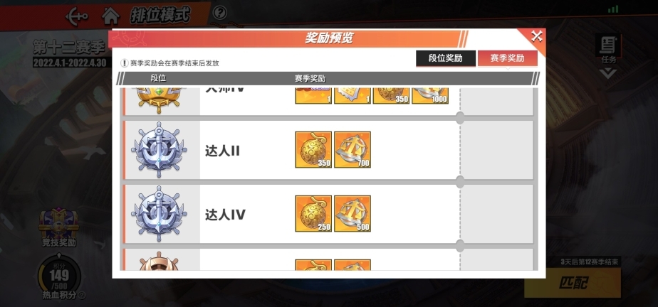 6.竞技场段位达到达人二可领350,赛季更新后又领350,月可得700金果。