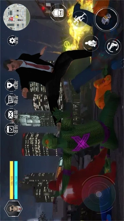2、每个角色都拥有独特的能力,你甚至可以扮演超人,在城市里尽情探索。