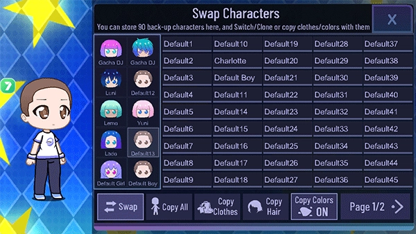 2、这里有一排保存人物的编号,随便选一个就行,点击后你的人物就会变成初始小男孩。