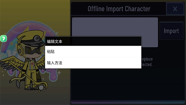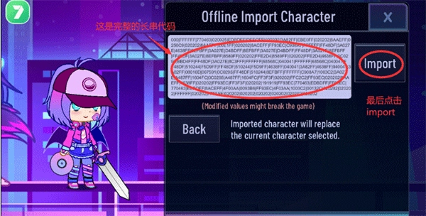 3、框内会出现一长串代码,这般长度才是完整的,最后点击“Import”,就能使用他人分享的人设啦!