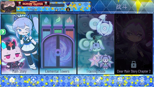 5、战斗模块中有多种玩法可供体验,包括Main Story(主要故事)、Elemental Towers(元素塔)以及Training Mode(培训模式) 。