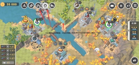 观察此时你点了黄色箭头的位置后箭头和提示是否有变化,如果没有变化,情况大概率应该是在教程引导你之前,你就已经将功能选择为铺设或者拆除了,此时系统没有判断到你选择铺设或者拆除,则无法进行下一步。