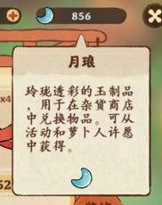 A7:是月琅。在游戏下方目录栏“游乐-杂货-材料”中用来兑换卷轴、建筑材料、加速符、食材、鱼饵等,以及在“材料”下面的“装饰”中兑换乙丙级装扮。