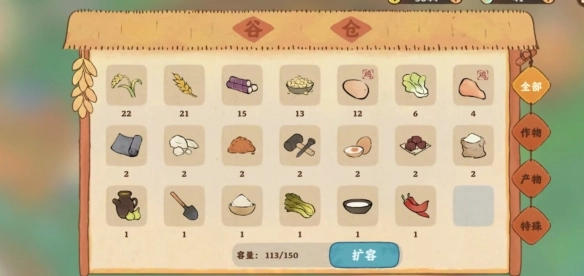 A3:比较常用的是“铜钱”和“玎当”。铜钱相当于游戏里的金币,很容易获取,用来买一些普通的东西。而玎当就比较重要了,特别是到后面要扩容谷仓的时候会很稀缺,前期一定要珍惜使用。