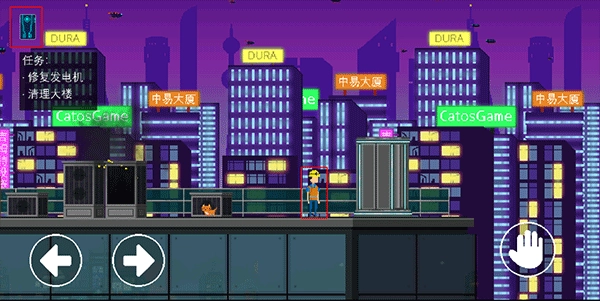 7、修好发电机后继续向左移动至楼顶尽头,出现交互图标后点击右下角按钮进入清理大楼的界面,一共需要经过四次清理,第2、3、4次的清理按照图示位置摆好信标即可通过。