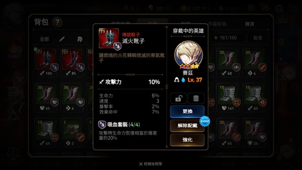 2、深渊吸血装备:这一套装备的强度不算是顶尖,不过作为过渡用已经够了,不歪强化的话也能用很长一段时间。