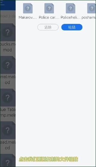 1、在第三方渠道下载好的模组,将文件使用“ES浏览器”打开,然后复制全部模组