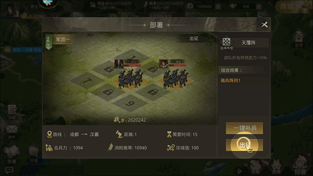 6、然后在部署界面选择并点击“出征”的按钮选项开始战斗了;