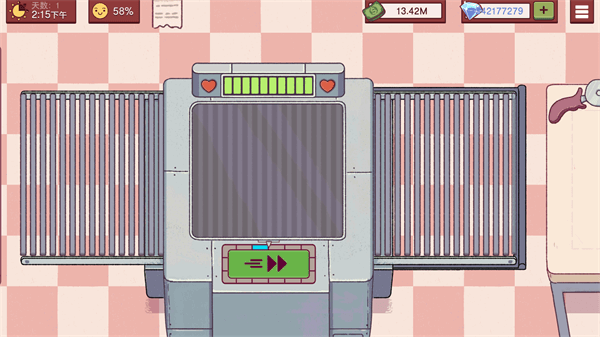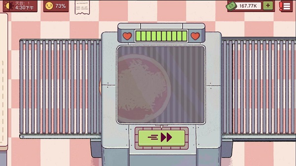 1、首先我们桌上角的太阳代表时间,当到达9:00后我们就下班了。旁边数值代表客人的耐心度,当跌到50%的时候客人就不会给小费了。右边是我们的金额。