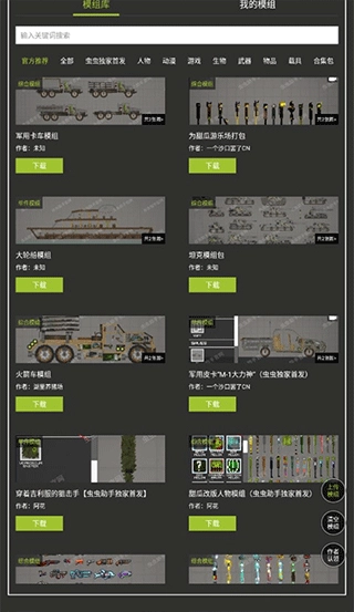 3、软件内有大量的模组资源可以下载,根据自己的需要,选择适合自己的模组,在游戏中打造自己想要的世界;