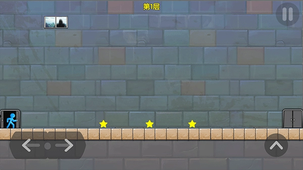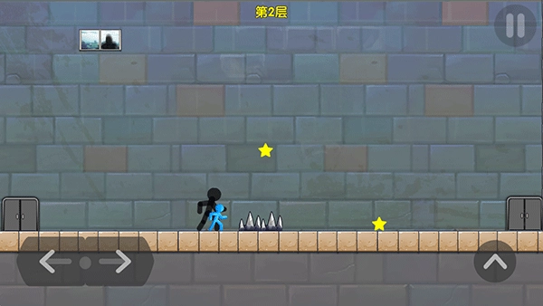 2、通过点击左右两侧的“箭头”来控制火柴人移动和跳跃,躲避障碍。