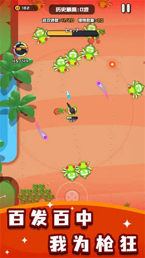 2、每个关卡都会涌现出大量怪物,你需要寻觅安全的位置,尽情自由射击,通过提升等级来解锁全新技能。