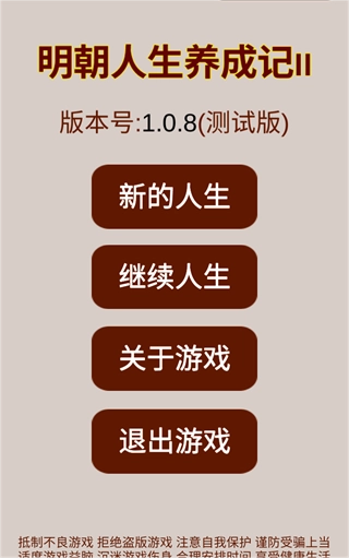 《明朝人生养成记2》是一款单机文字游戏,它以明朝为背景,玩法涵盖模拟、经营与养成。作为《明朝人生养成记》的续作,玩家在游戏里拥有多样选择。既能够入朝为官,施展抱负;也可以逐鹿天下,成就万世传承的霸业;还能选择经商种田,过上腰缠万贯的生活,全方位体验一段别具一格的大明人生。 此游戏在保留前作部分玩法的基础上,对游戏机制进行了重新调整,不仅重制并增添了诸多新玩法。像是重制官职玩法,融入明朝的派系斗争元素,同时拓展出许多官职相关新玩法,让当官体验不再枯燥;重制自立流程,让玩家感受逐步扩张的乐趣;更有子嗣可结婚生子等众多新颖设定。游戏旨在为玩家带来焕然一新的游戏体验。