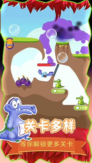 想必各位都玩过给鳄鱼洗澡这款游戏吧,在游戏里要依据不同状况把水引到鳄鱼所在的浴室,不知道你通关了没,有没有觉得玩得不够尽兴呢?今天小编要给大家介绍一款游戏——救救小鳄鱼,它的玩法和给鳄鱼洗澡近乎一样,区别在于:玩家得让污水远离小鳄鱼,并且要引导污水流向关卡中的怪物,成功消灭怪物就能赢得游戏胜利。