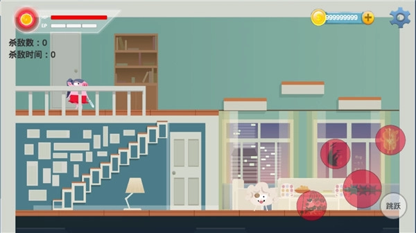 4、游戏操作很简单,左侧是用来控制方向移动,右侧则是【跳跃】