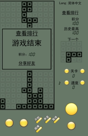 3、消除行数越多,分数越高,级别也会越高,级别越高,游戏难度越大。