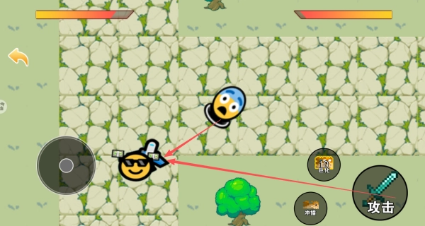 2、控制角色在地图当中移动,点击攻击按钮,对敌人发起袭击。