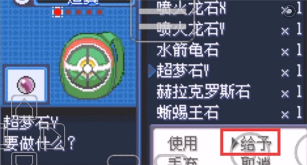 携带好之后,在战斗过程中选择一个技能,按下“start”,再按下“A”就能触发mega进化了。
