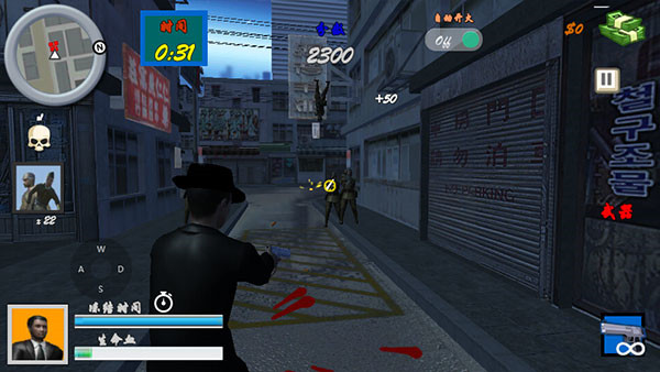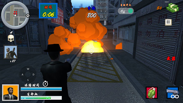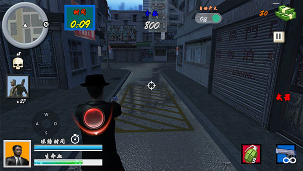3、获得武器后,便可开启战斗。其操作方式极为简单,极易上手,左边用于控制瞄准方向,右边则用来操控武器射击等。