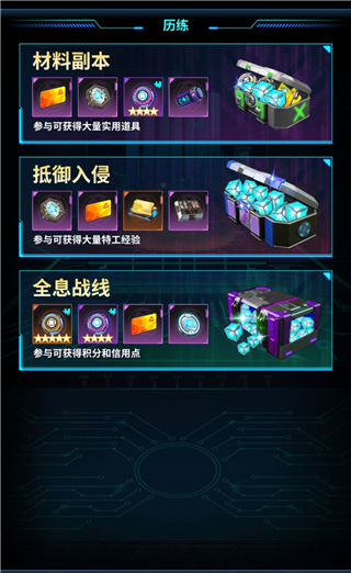 抵御入侵:除了通关奖励,每日仅刷一次所获取的信用点与经验,相较刷完所有材料副本而言,略为逊色。