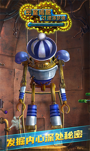 《密室逃脱21遗落梦境全攻略高级版》是一款具有蒸汽朋克风格的冒险解谜类手游。玩家在游戏中扮演一名13岁的男孩,需要在蒸汽朋克风格的城市与充满奇幻色彩的魔法森林中展开冒险,所有谜题,最终成功拯救自己的朋友——奥罗拉公主。