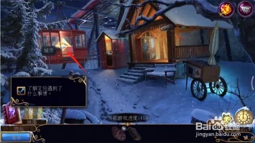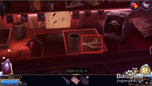 获取热水后,利用热水将咖啡馆门上的冰融化,接着走进咖啡馆。进入咖啡馆之后,首先完成找东西的小游戏。待小游戏完成,使用瓷砖把沙发移开。移开沙发后进入地下室。进入地下室,先拿到备忘单、胶卷、背包以及定影剂。随后点击下图箭头所指之处。