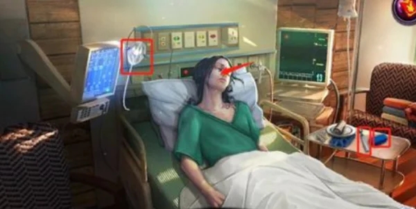 开局点击女孩,点击后,拿到耳镜和膏贴,并给女孩戴上氧气罩。接着用耳镜拿到振颤器,拿到振颤器后,给女孩用振颤器,记得最后要点一下绿色的按钮。用完振颤器,接下来点击墙上的时钟,取下电池。然后点击桌子,拿到剧情本和遥控器,还有关灯。将遥控器,电池,膏贴组合成电视遥控器。然后用遥控器关电视,关了电视后,点击女孩。点击女孩,进入女孩潜意识后,先拼出完成的图形。
