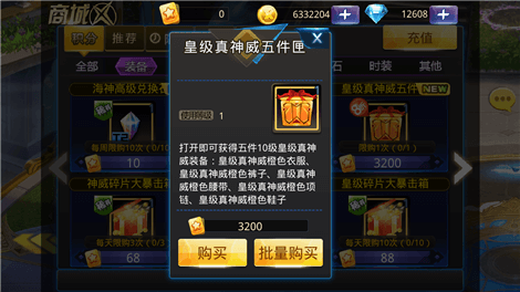 天天炫斗经常会开启各种活动,大家在活动中不但可以获取很多极品道具,同时也可以获得各种装备。而且每次活动开启,天天炫斗为了让更多的玩家参与到活动中去,会在商城中放出很多优惠礼包!比如最近放出的皇级神威五件套礼盒,玩家只需要花费3200积分,直接就能买到皇级装备礼盒。打开后直接获得全套皇级装备,一秒上巅峰!
