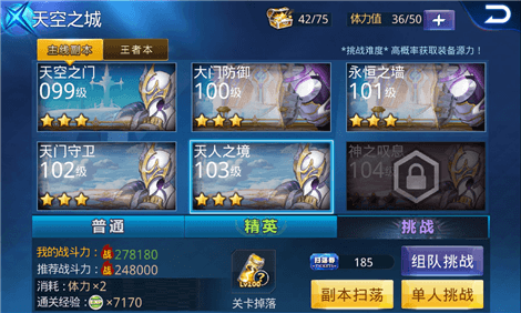 天空之城副本的天人之境是天空之城副本的第十四个主线关卡,这个关卡是100装备源力碎片的主要产出地之一,所以通关天人之境可以说是势在必得。天人之境副本一共分为普通,精英,挑战三个难度等级,小编今天为小伙伴们带来的是挑战级天人之境的通关攻略。