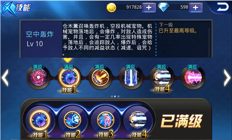 空中轰炸属于远程伤害类技能,爆炸之后会召唤出一个能追踪敌人的自爆机器人,这个技能在造成伤害方面表现出色。机动装甲与召唤领悟所召唤出的炮台,其火力能够覆盖整个战场,无双机甲则是用于最后收割的技能。
