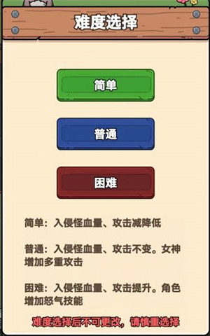 5. 初次在女神处开启防守时,需选择难度,选定后无法更改。(角色技能仅在困难模式下可学习)