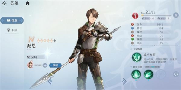 主动攻击时,攻击增加10%;战后周围2格范围内得友军获得攻击提升15%的效果,持续1回合。