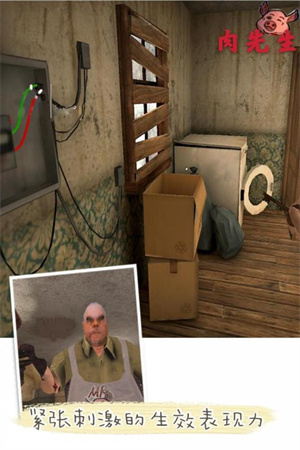 恐怖屠夫肉先生1.9.2版本里不仅需要寻找到所有的同伴,同时我们还需要躲避开恐怖屠夫的追捕。你可以在猪肉屠宰场的各个场景里进行探索,然后寻找到各种有用的线索,从而将自己的伙伴全部寻找出来。