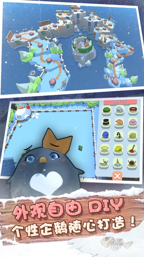 爱好和平的企鹅们决定通过体育运动来解决领土归属权问题。双方各自挑选一只最为贪吃的企鹅来扮演国王,接着在自己的部落里选出3名企鹅勇士。这些勇士们会在场地中展开激烈争夺,目标是抢夺鲑鱼并喂给敌方的国王,一旦某一方国王体重超标,该方就宣告失败。 在这个过程中,企鹅们为了那一条鱼,可谓是斗智斗勇。它们会用肚皮溜冰相互冲撞,还会煽动小翅膀跳跃,整个场面就像企鹅大乱斗,随时都能给玩家带来满满的幽默感,让玩家不知不觉就沉浸在游戏之中。而且,不同势力的企鹅会为场地中的鱼展开激烈的争夺。它们要在企鹅队友的配合下,冲破地形障碍、克服随机出现的困难,还要突破对手企鹅的百般阻挠,把鱼送到对方贪吃的企鹅国王那里,努力将其喂胖。哪一方的国王先超重,哪一方就输掉比赛。