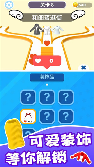 1. 游戏玩法极具自由度,能够收集多样的服装,在跑酷赛道上,你得躲开形形色色的障碍物。