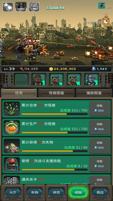 此处主要涵盖四种研究功能,分别为怪兽研究、生产研究、战斗研究以及发明。