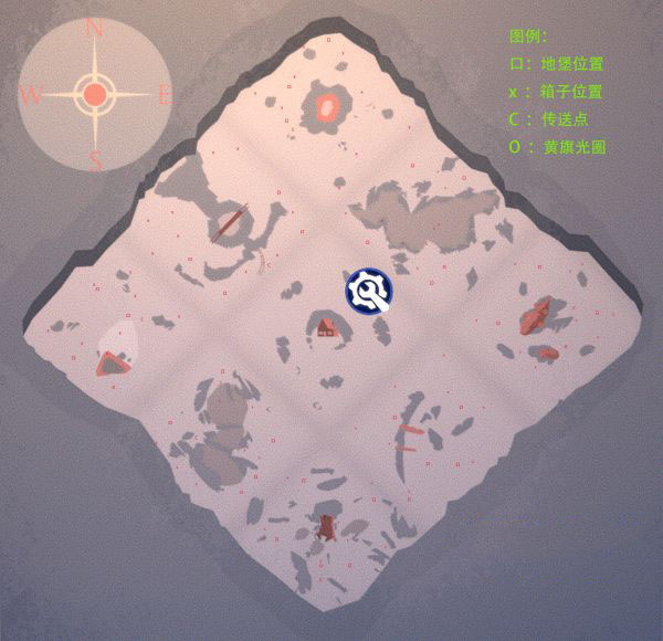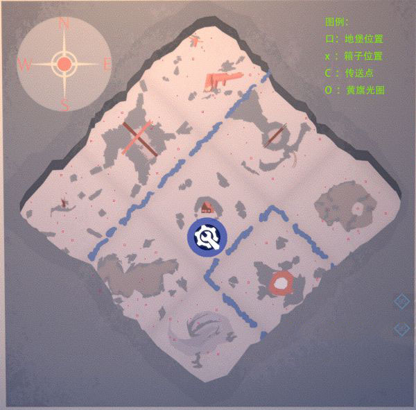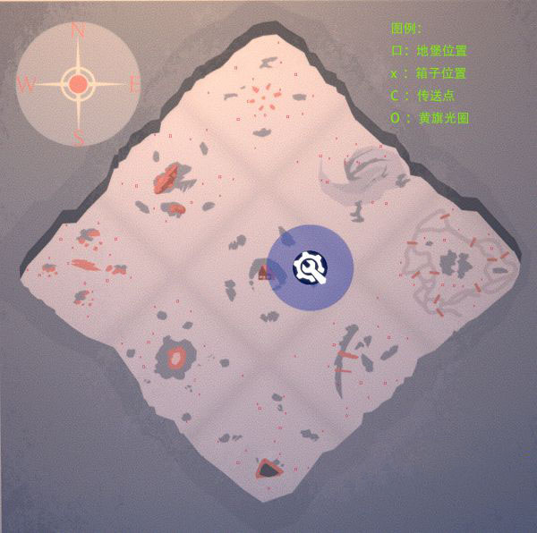 这张图的SE方向是没有刷箱点的,所以如果要刷光场上所有的箱子,推荐从S悲伤沼泽或者E诺曼底峡谷开始刷,可以从家附近的传送门出发,这样能节省一点跑路时间。