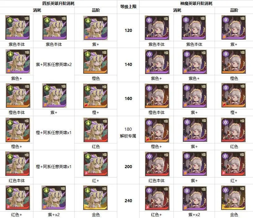 强度榜主要根据后期会使用到英雄推荐,神魔的强度大于四系,但同时又更加难得,前期任何紫卡都是可以培养的,需要更换时可在主城-风之工坊进行重置(返还全部材料)