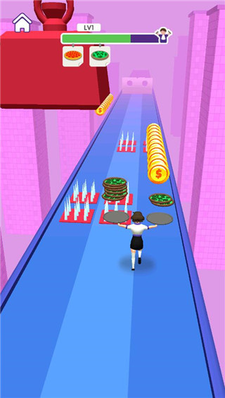 3、躲开赛道上的障碍物,尽量多获取赛道上的披萨。