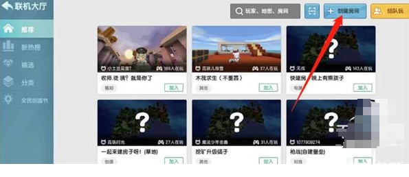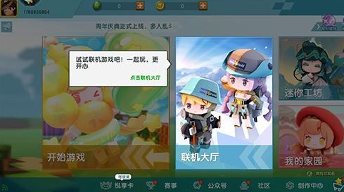 1. 进入游戏大厅后,有四种游戏模式可供选择,分别是自建房间、联机玩法、迷你工坊和我的家园。