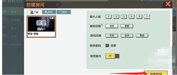 3、点击之后设置好房间的信息后再次点击右下角的创建房间,如图所示。