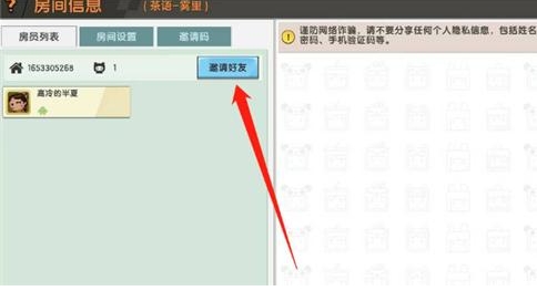 5、如图所示,在房间信息界面,玩家能够看到邀请好友的选项。