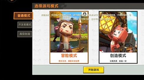 2、在首页点击开始游戏,创建一个新的世界选择冒险模式进入到游戏之中;