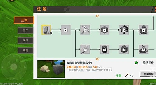 3、进入游戏之后,右上角有任务提示,根据任务提示收集需要的材料;