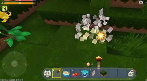 5、寻得材料后,把游戏视角移至石头处,接着长按石头,便能自动获取材料。