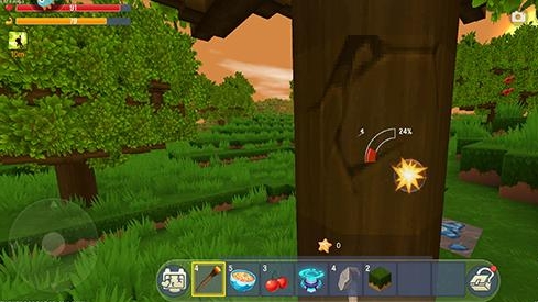 7、从树上获取细树枝,完成这个任务需要先来到树木旁边,通过砍树获取相应的细树枝;