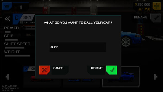2、玩家能够从车库里挑选出自己较为喜爱的那几辆车,并为它们取上昵称,比赛结束时,这些昵称将会显示出来。