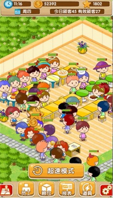 1. 游戏玩法大家都熟悉,玩起来轻松无压力。凭借丰富的经验与技巧,能将饭店经营得红红火火。